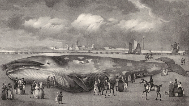 Kortgeleden stuitte ik op dit historische verhaal, dat niet bij veel Nederlanders en Belgen bekend is. Een opmerkelijke gebeurtenis: op 3 november 1827 wordt een gigantisch walvis door vissers aan land gebracht in Oostende. Het dode dier trekt veel bekijks van nieuwsgierigen uit de wijde omtrek. Herman Kessels, destijds dounier aan de Schelde, koopt de walvis en schenkt hem aan Koning Willem I. Op voorwaarde dat hij zelf eerst vijf jaar met het geraamte exposities mag organiseren. De koning gaat akkoord en hiermee krijgt de walvis het predikaat 'Koninklijke Walvis'.
